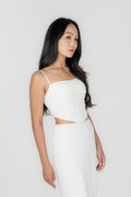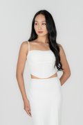 - Cropped fit with curved hem